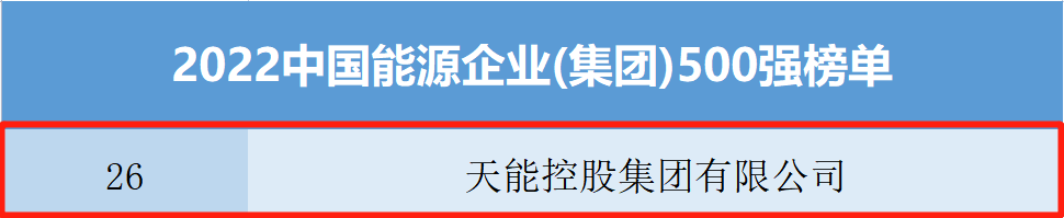JJB竞技宝再登中国能源企业500强第26位,持续领跑行业第一